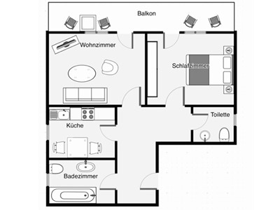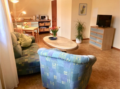 Das Appartement ist ca. 40 qm groß und ist voll eingerichtet. Dazu gehört eine Küche sowie ein Bad mit Dusche und WC. Außerdem gibt es Sat-TV und kostenloses WLAN.
